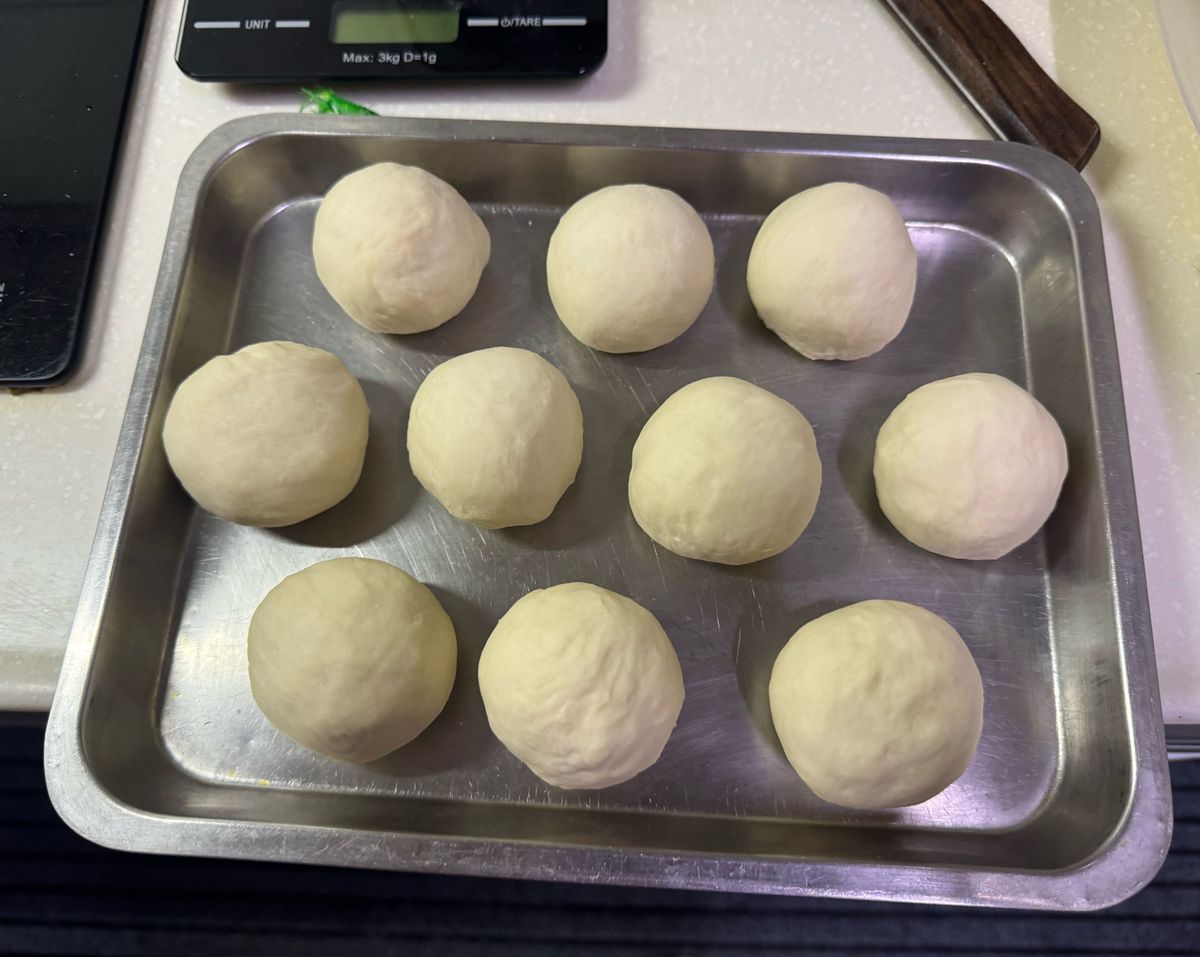將分切好的麵糰收成麵球