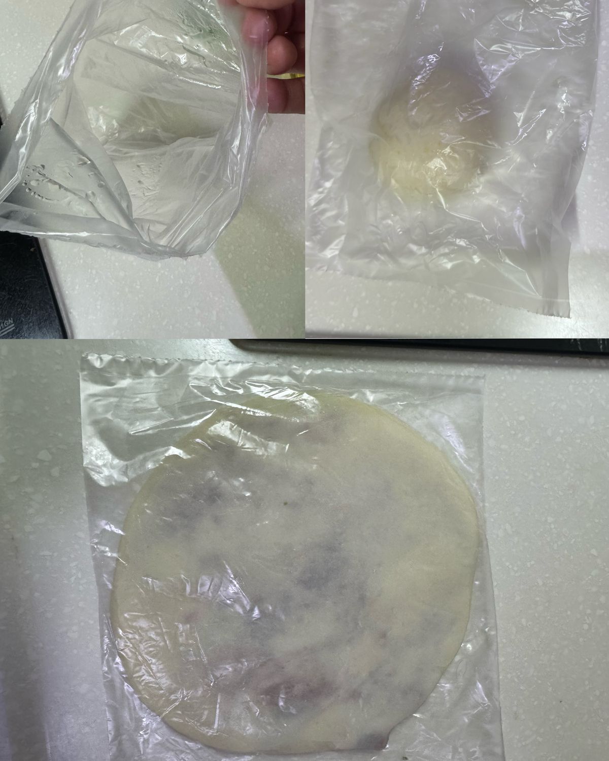 可以把還沒要吃的部分,用塑膠袋裡面噴一點油,把麵團放進去之後慢慢壓平到想要的厚薄度,然後用夾鏈袋裝好後放進去冷凍保存!下次要吃的時候可以直接拿出來煎炸唷!